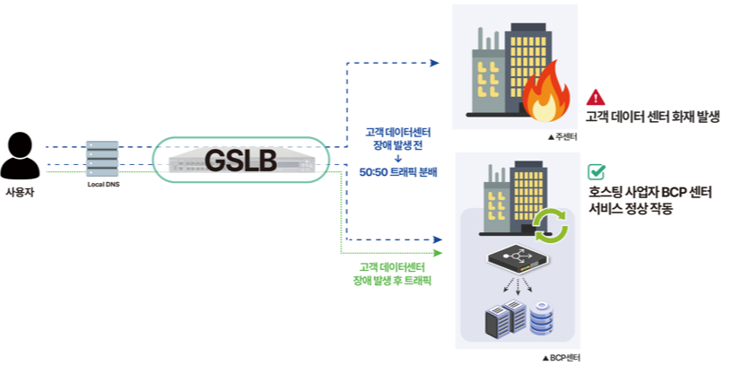 GSLB๋ก ์ผํฐ ์ํ ์ค์๊ฐ ๋ชจ๋ํฐ๋ง ๋ฐ DNS ๊ฒฝ๋ก ์๋ ๋ณ๊ฒฝ